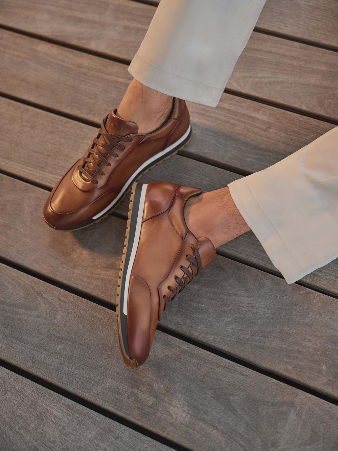 Magnanni was een van de allereerste schoenmakers die natuurlijke leren schoenen maakten en ze met de hand verfden om te bereiken wat nu patina heet. De hoofdontwerper heeft de weg geëffend in het origineel handgeschilderd schoenontwerp. Elk paar prachtig gemarmerde schoenen doorloopt verschillende stappen van kleurbehandeling, wat resulteert in de schitterende Magnanni afwerking die nooit wordt gedupliceerd. Kom naar de winkel en ervaar het zelf.